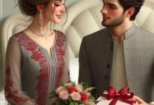 مراد طيب تعالي وراها فستان بأكمام شفافه وديل طويل ورقيق ومطرز بالالماس