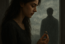 سافر البغدادي مع عروسه ليعيشا في بغداد. ماټت ام الشامي وفقر وباع بيته ليأكل بثمنه وقلت النقود ولم يبق إلا شيء يسير فقرر ان يسافر الى صديقه في بغداد وحين وصل بغداد علم ان صديقه البغدادي اصبح من اغنياء بغداد ولديه قصر فيها فتوجه لقصره وطلب من الخادمة مقابلة صديقه فعادت الخادمة تحمل كيسا من النقود الذهبية وأعطته اياه فقال لها انا اريد مقابلة صديقي ورمى بكيس النقود فانفرطت الليرات الذهبية على الأرض وذهب وفي عينيه دمعة كبيرة …….