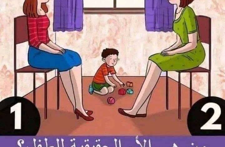 كل ما عليك فعله حرفياً هو التحديق جيداً بالصورة المرفقة، والتركيز بعواملها حتى الوصول إلى أم الطفل الحقيقية.