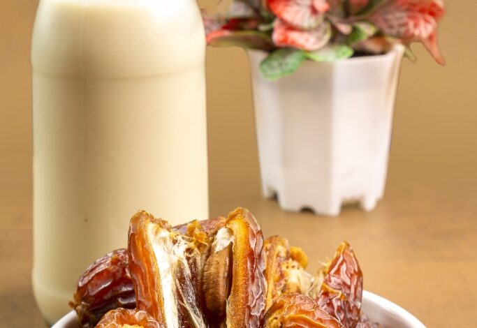 - انقع التمر في الحليب الدافئ لمدة نصف ساعة.