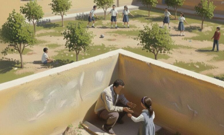. أم راحت المدرسة بدري تدور على جاكيت ضاع من بنتها، وكانت متخيلة إنها مجرد زيارة سريعة وترجع. لكن وهي بتسأل وبتلف، دخلت الجزء الجانبي من الملعب اللي الأطفال بيسمّوه “الجنينة”