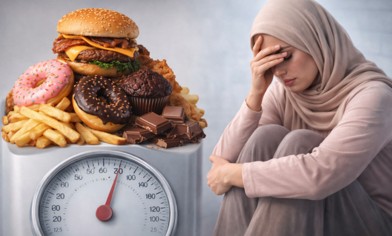 نوبات أكل + ندم + استسلام.