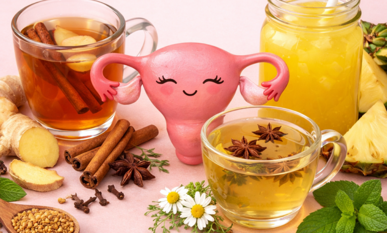 🌸🔥 أنا الرحم… وهذه مشروباتي السرّية وقت الألم والتقلصات! لا تشربي أي شيء قبل ما تعرفي وقت كل كوب!