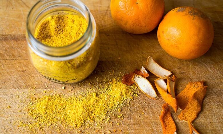 جففي قشر البرتقال في الشمس ثم اطحنيه واحتفظي به في علبة زجاجية، وستحصلين على مكون تجميلي طبيعي يمكنك استخدامه في أي وقت. 🍊